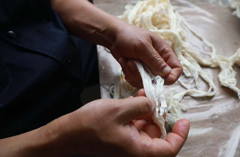 2003年,朱建新在廣泛學(xué)習(xí)手工紙制作技藝后,在休寧縣南街(玉寧街117號(hào))建手工紙紙坊,開始恢復(fù)休寧楮皮紙的生產(chǎn)。2016年,因城市改造拆遷,紙廠移至海陽(yáng)鎮(zhèn)下汶溪村重建,并注冊(cè)成立了黃山市凝霜文化發(fā)展有限公司擬建休寧手工皮紙歷史文化展示館、體驗(yàn)館、紙藝館、美術(shù)館以及藝術(shù)家創(chuàng)作中心,以更好的傳承和發(fā)掘休寧手工造紙的工藝技術(shù),使休寧手工造紙技藝與文化發(fā)揚(yáng)光大,代代相傳。