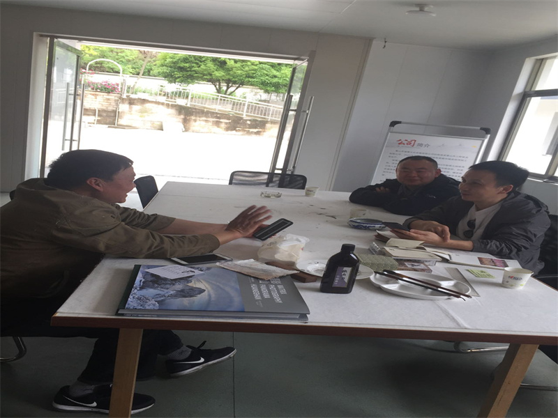 2021.4.13著名書(shū)法家劉老師、徽墨大師來(lái)公司參觀學(xué)習(xí),了解楮皮紙技藝,如何做出好楮皮紙,挑選好紙。