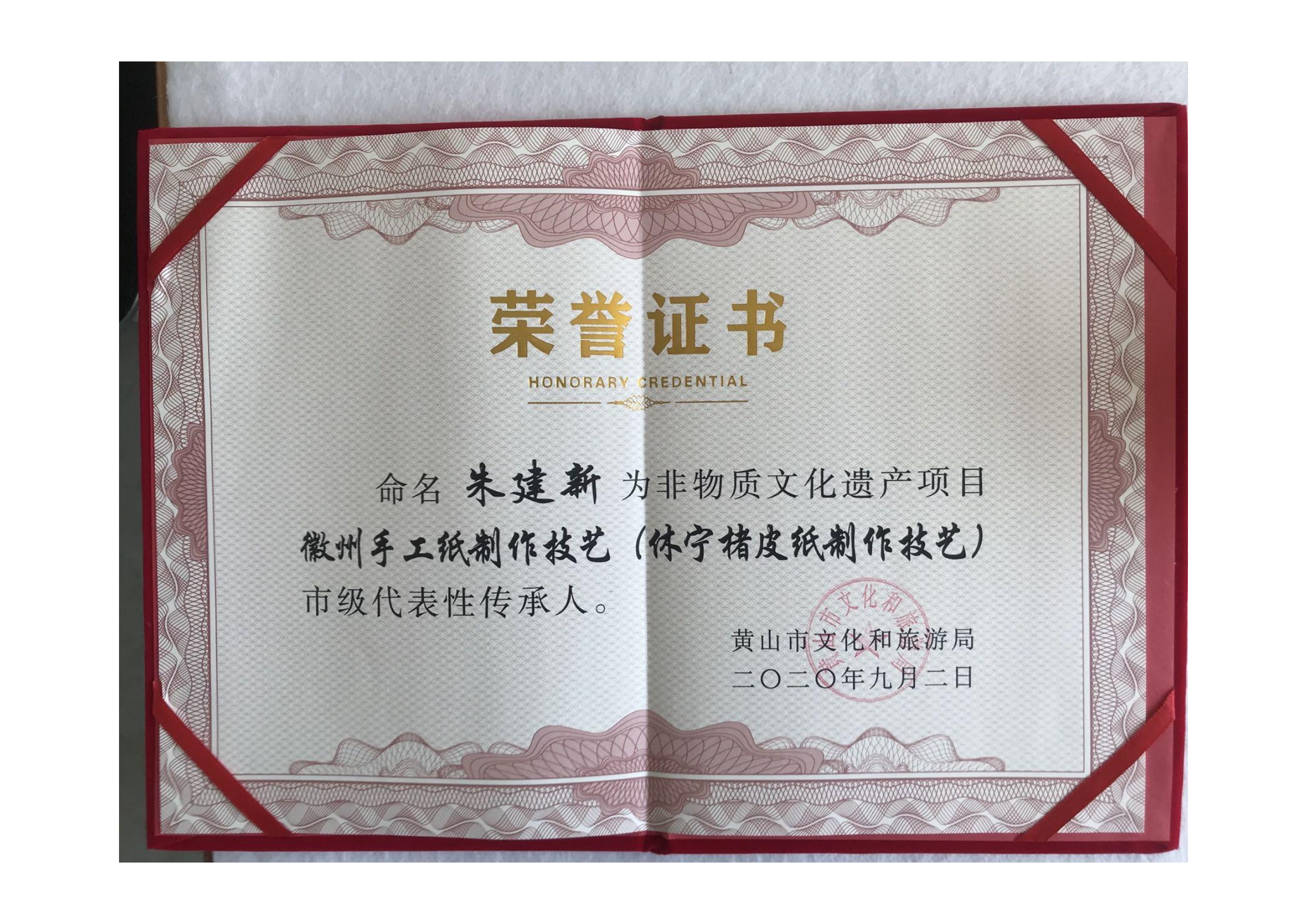 2020年公司實現(xiàn)了文化類規(guī)上企業(yè),迄今已申請了15項發(fā)明專利,19項實用新型專利,其中已授權(quán)發(fā)明專利3項,實用新型專利11項;2022年,公司為北京第24屆冬季奧運會提供楮皮紙和紀念品,非遺傳承人朱建新被授予北京2022年冬季奧會參與證書,以感謝第24屆冬奧會取得圓滿成功做出的貢獻。2022年-2024年,朱建新被中國科技大學(xué)聘為《中國筆墨紙硯》全校公選課特聘導(dǎo)師;2023年,朱建新獲省級非遺傳承人稱號、“黃山工匠”稱號。